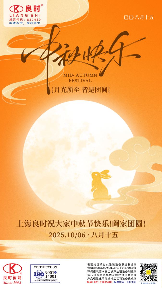 金风送爽,丹桂飘香。值此2025年中秋佳节来临之际,上海良时智能科技股份有限公司向您及您的家人致以最诚挚的问候和最深切的祝福!祝愿您月圆人圆事事圆,家兴事顺皆欢颜。